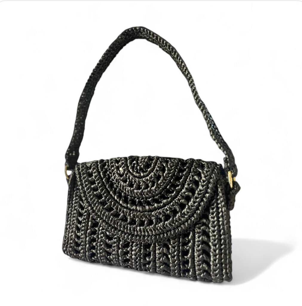 Handcrafted with intricate kili kili weaving, the Caila Bag is designed to be worn as a shoulder bag or styled as a clutch. Now available with an optional updated strap featuring metal ring details for added versatility and style.