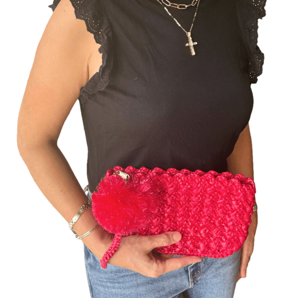 Handcrafted with tightly woven straw in a compact, structured form. Designed with a wrist strap for easy carry and finished with a soft accent detail for added texture. Lightweight, functional, and perfect for holding small essentials on the go.