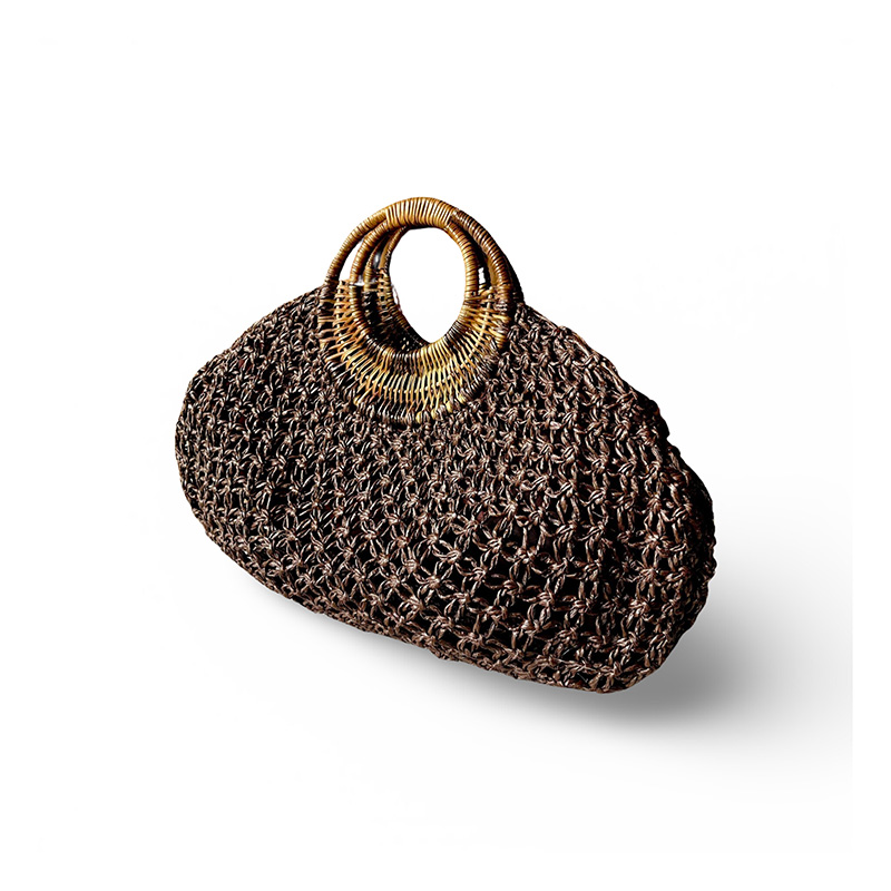 Handcrafted macramé bag that makes a bold statement. Its intricately woven body is paired with a sculptural rattan handle, blending artisanal texture with a clean, modern silhouette. Designed to elevate casual looks, resort wear, and daytime outings with effortless style.